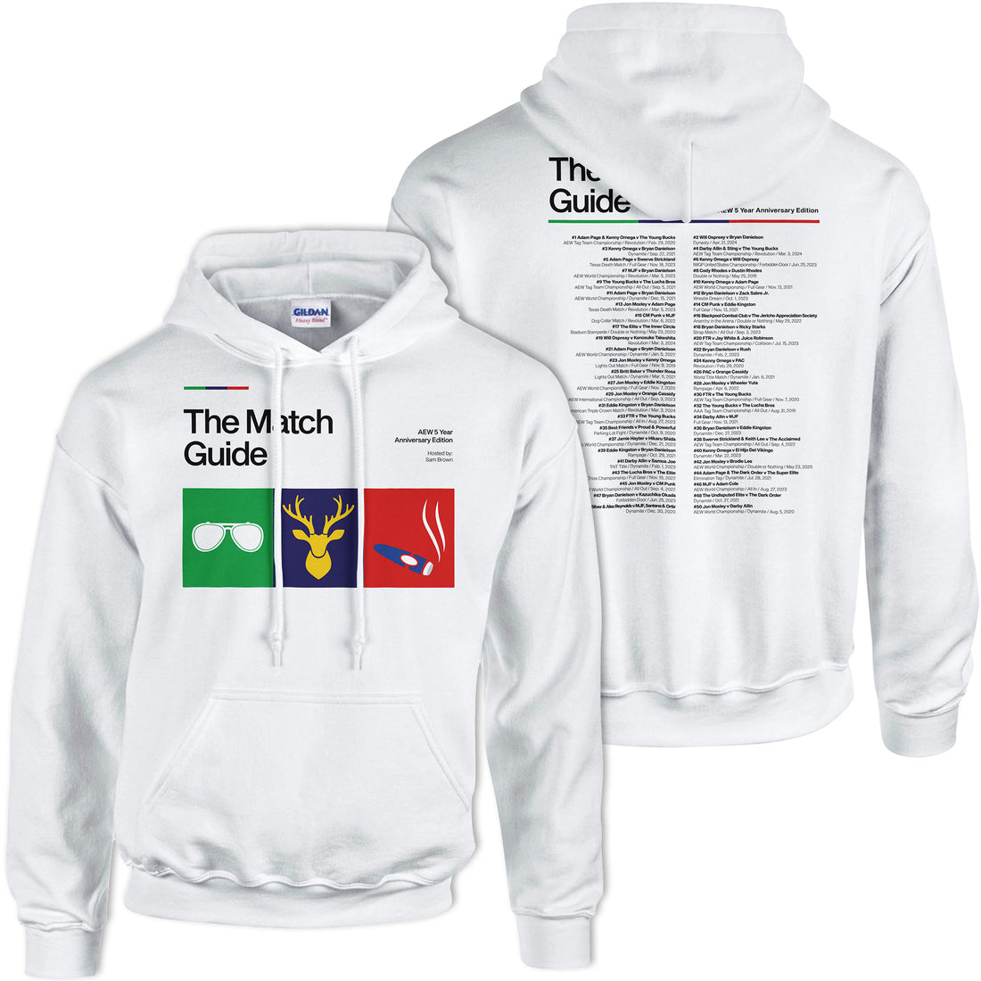 Classic heavy blend white pullover hoodie featuring The Match Guide (AEW 5 Year Anniversary Edition)...