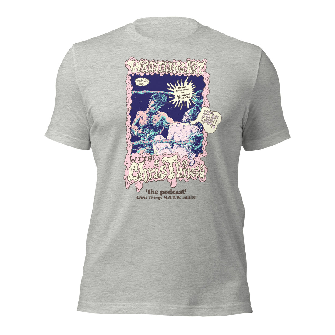 Premium Bella + Canvas athletic heather tee featuring the Wrestling Art with Chris Things Bryan...