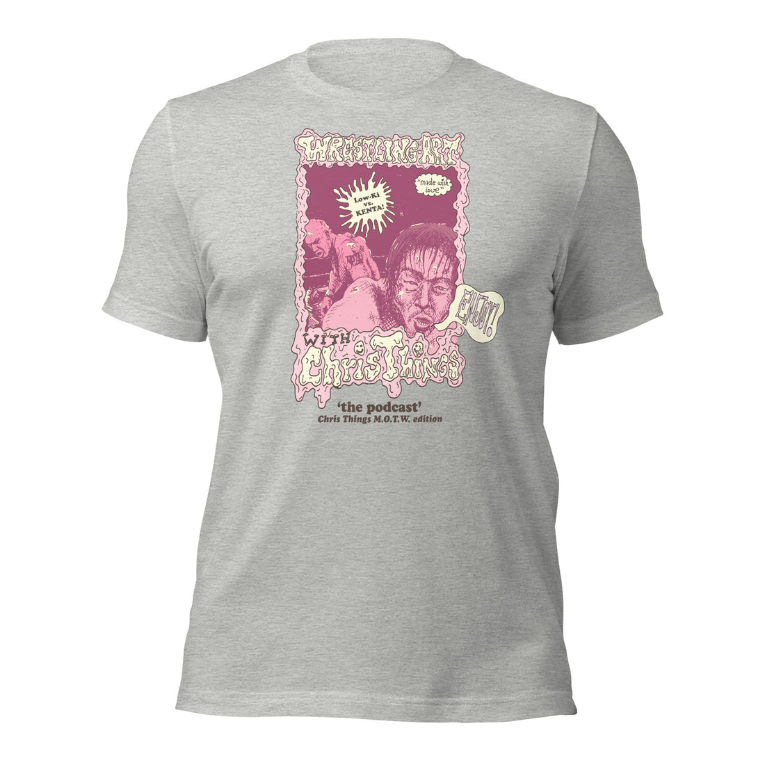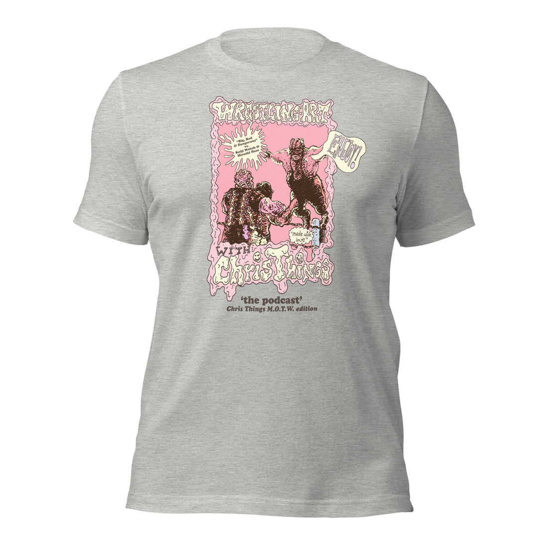 Premium Bella + Canvas athletic heather tee featuring the Wrestling Art with Chris Things Kawada...