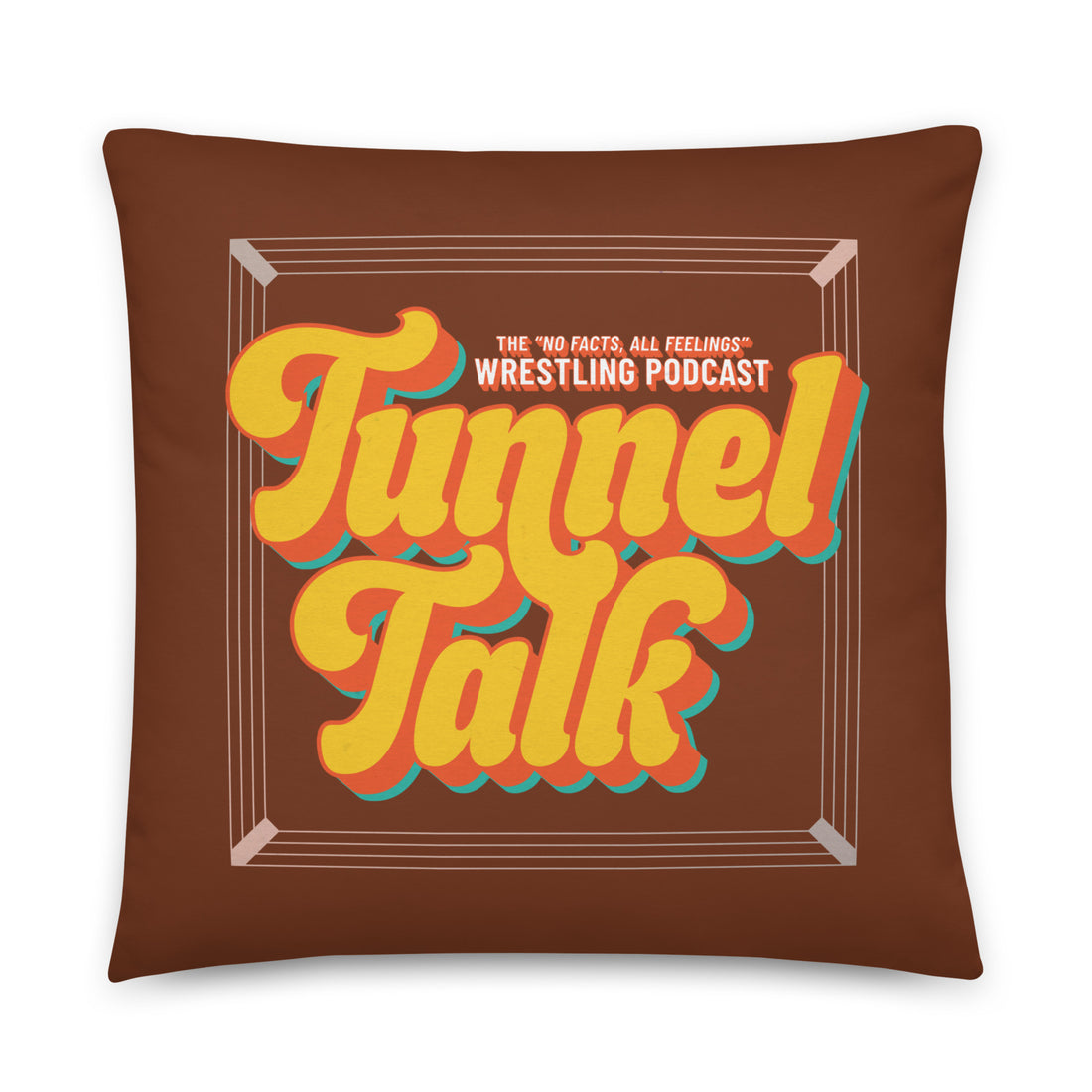 100% polyester machine-washable case with insert pillow featuring Tunnel Talk logo on front and back...