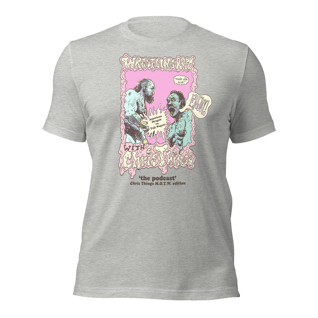 Premium Bella + Canvas athletic heather tee featuring the Wrestling Art with Chris Things American...