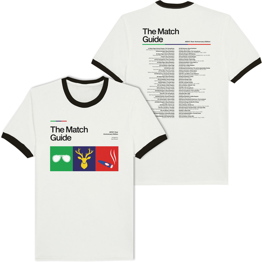 Classic white tee featuring The Match Guide (AEW 5 Year Anniversary Edition) artwork on the...
