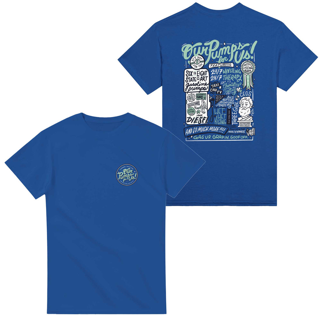 Unisex tee with Tunnel Talk's Our Pumps For Us! logo of the left chest and...