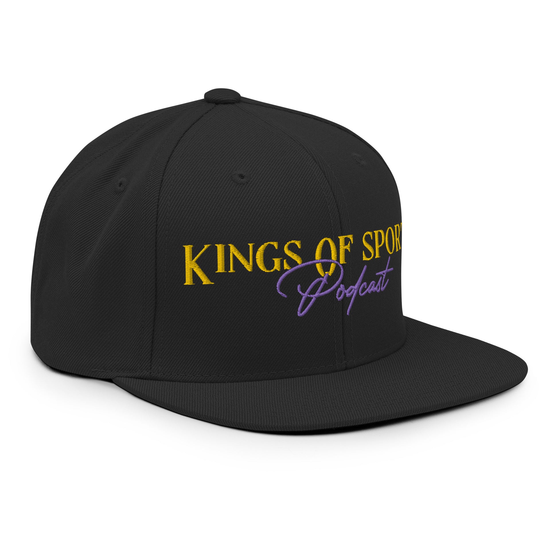 6-Panel high profile flat brim snapback hat with embroidered Kings of Sport Podcast logo. One size fits all.