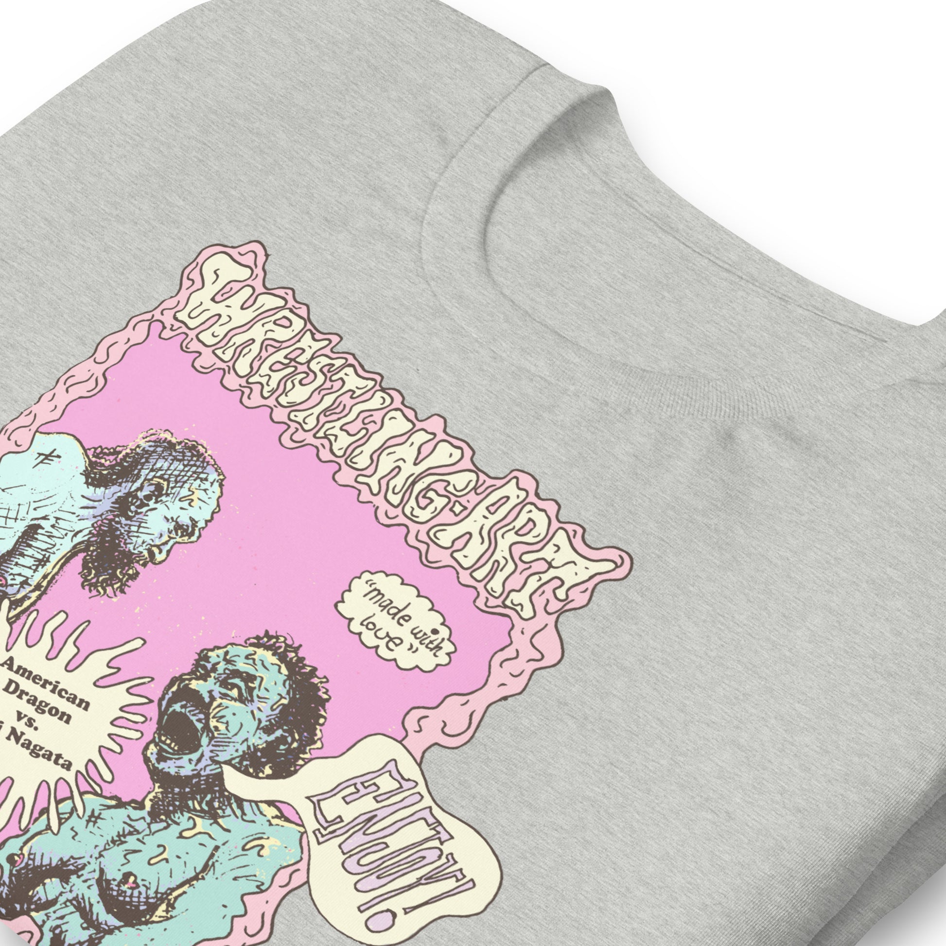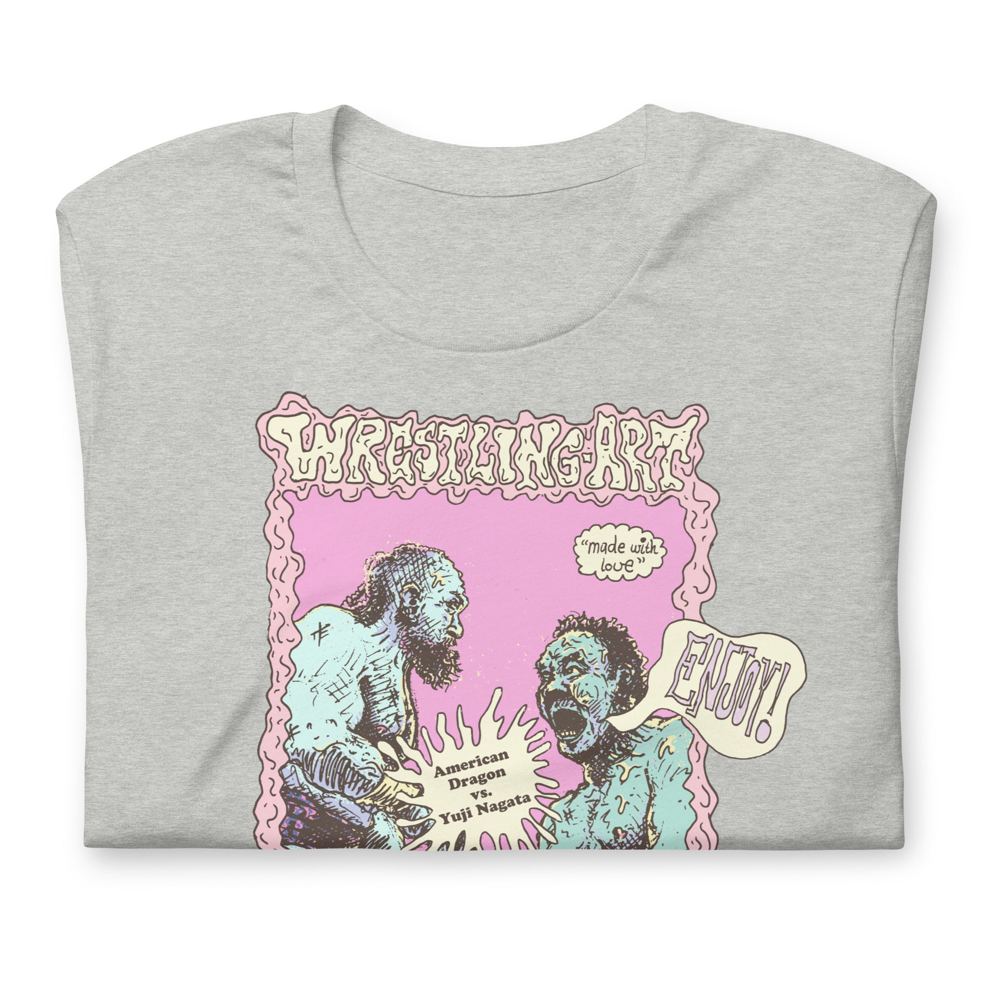 Premium Bella + Canvas athletic heather tee featuring the Wrestling Art with Chris Things American Dragon vs Yuji Nagata artwork. Designed by Chris 'Things' Bryan