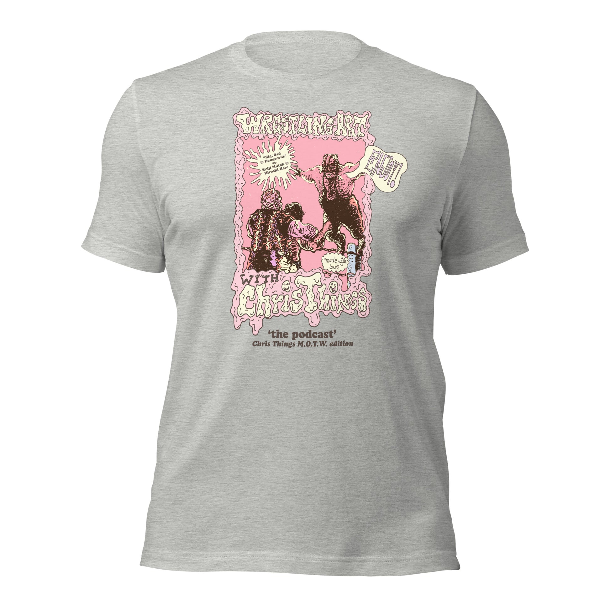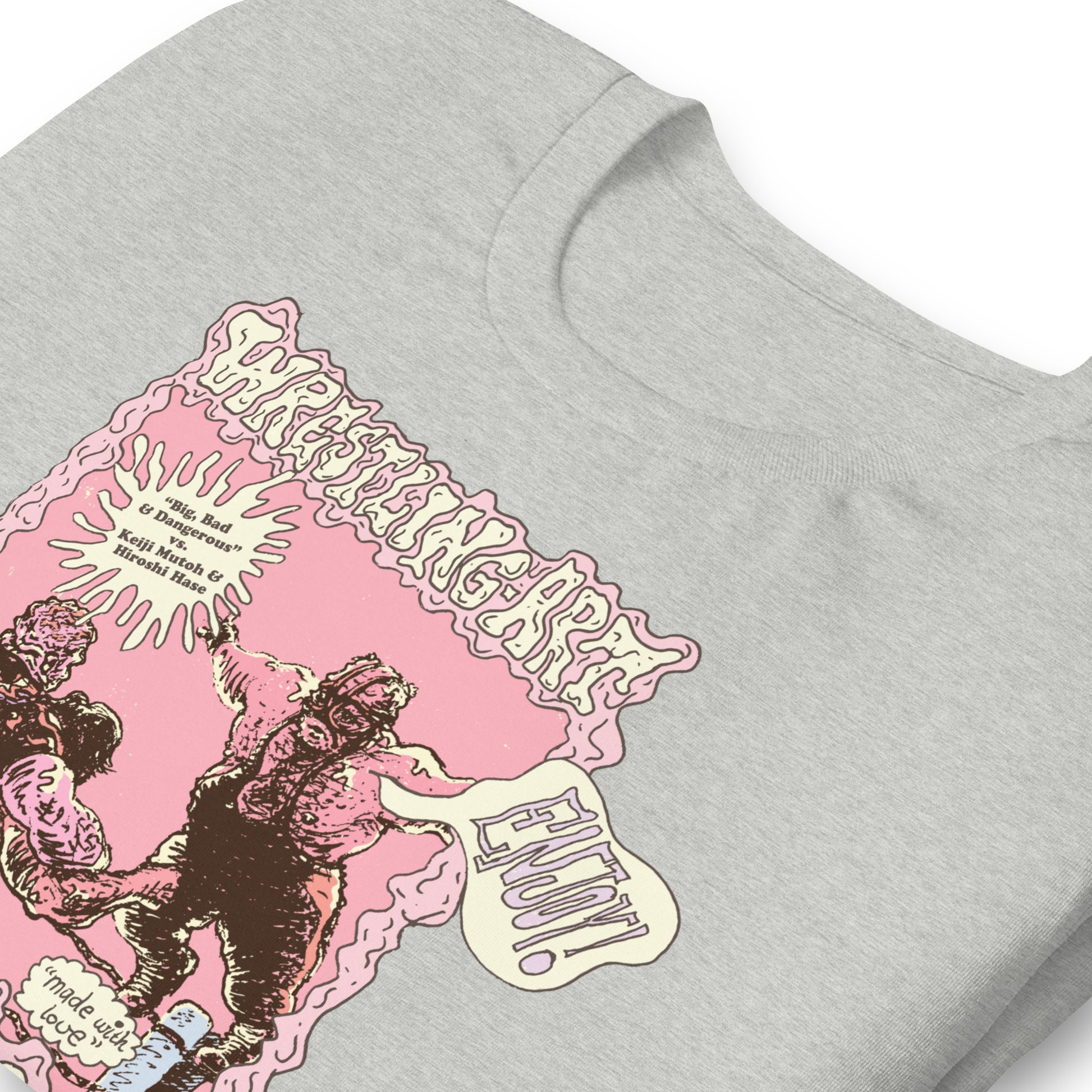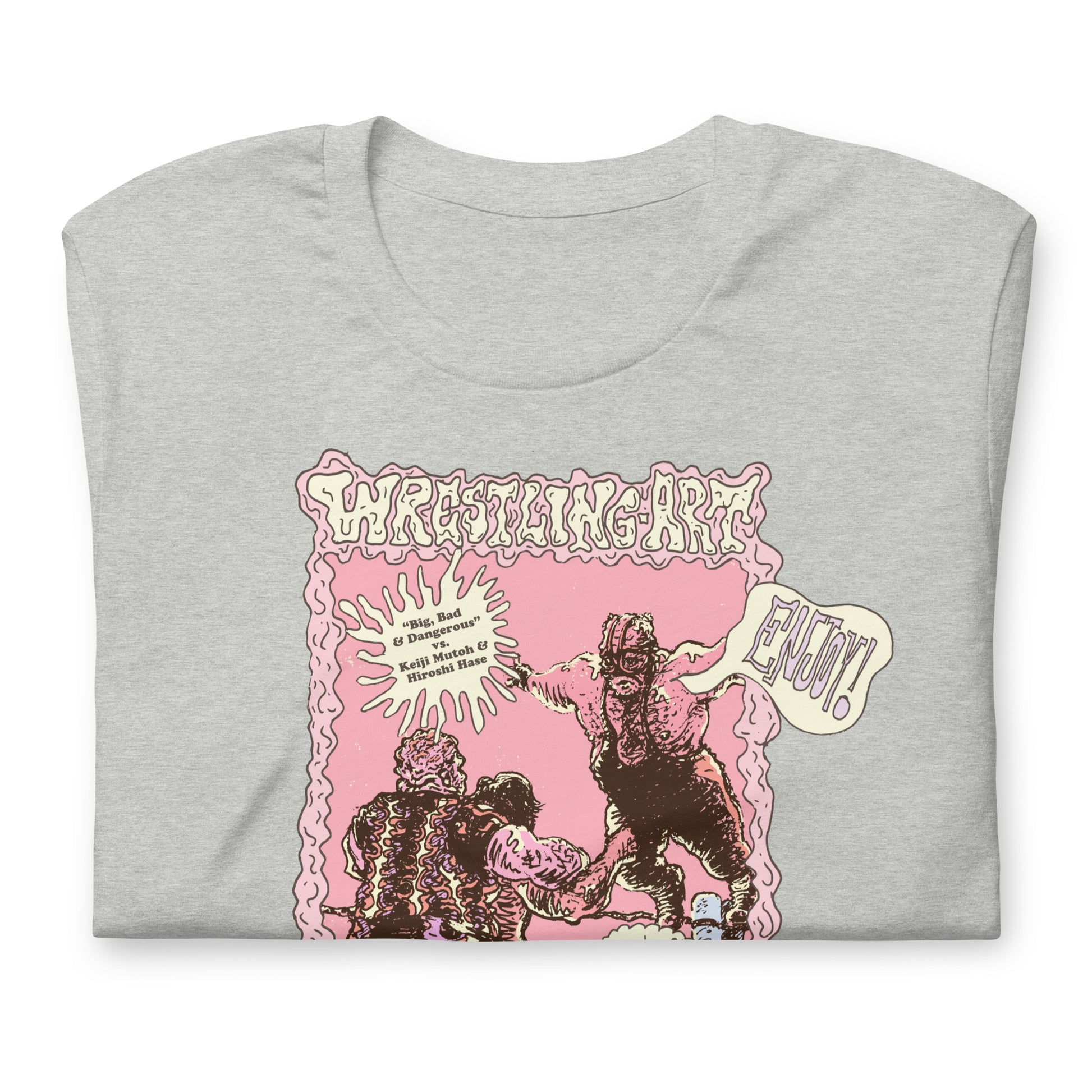 Premium Bella + Canvas athletic heather tee featuring the Wrestling Art with Chris Things "Big Bad and Dangerous" vs Mutoh & Hiroshi Hase artwork. Designed by Chris 'Things' Bryan