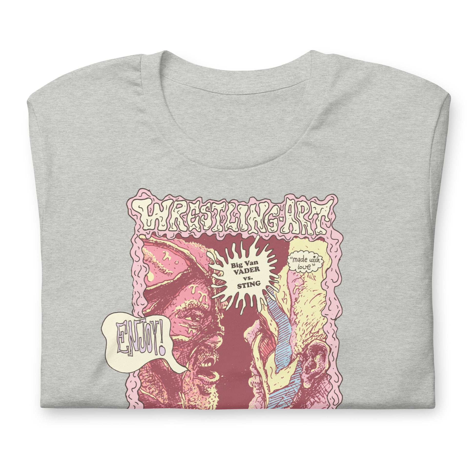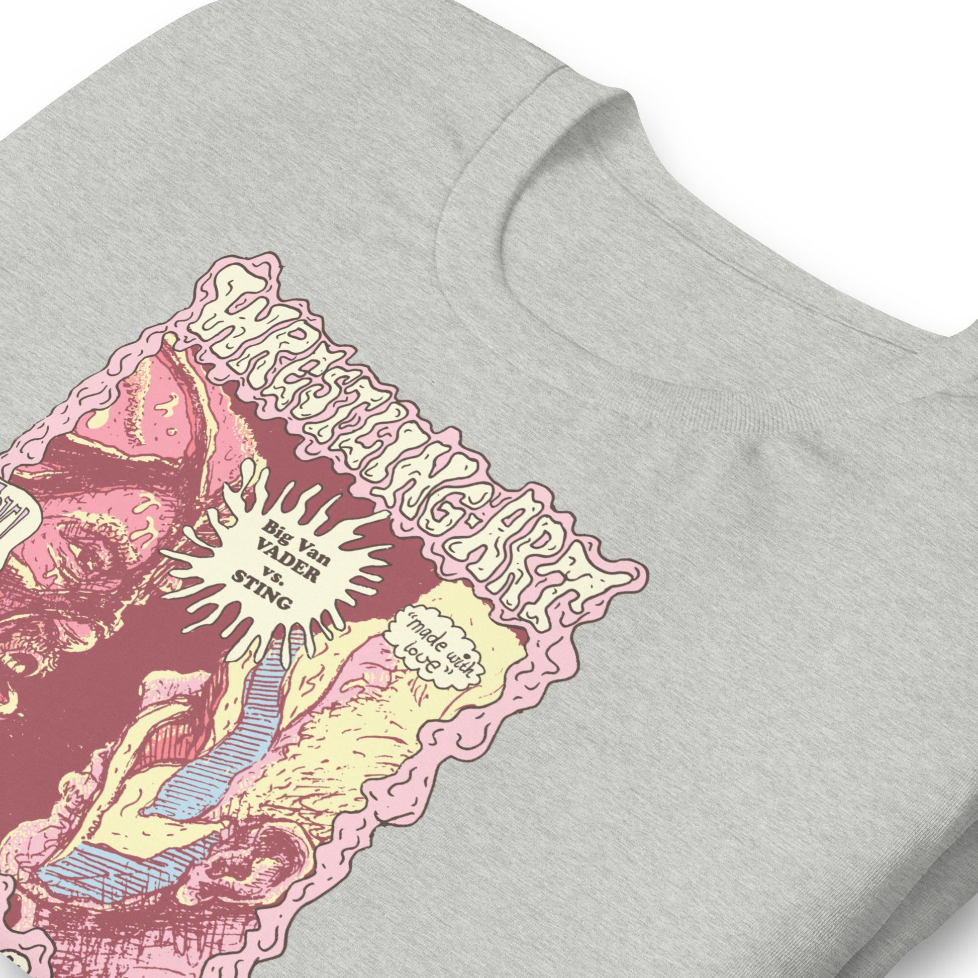 Premium Bella + Canvas athletic heather tee featuring the Wrestling Art with Chris Things Big Van Vader vs Sting artwork. Designed by Chris 'Things' Bryan