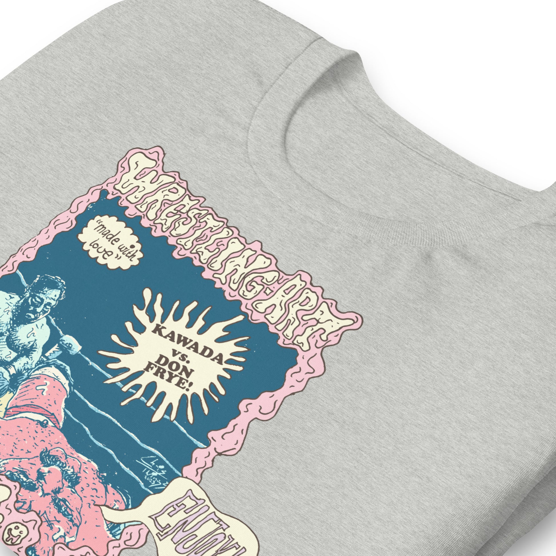 Premium Bella + Canvas athletic heather tee featuring the Wrestling Art with Chris Things Kawada vs Don Frye artwork. Designed by Chris 'Things' Bryan
