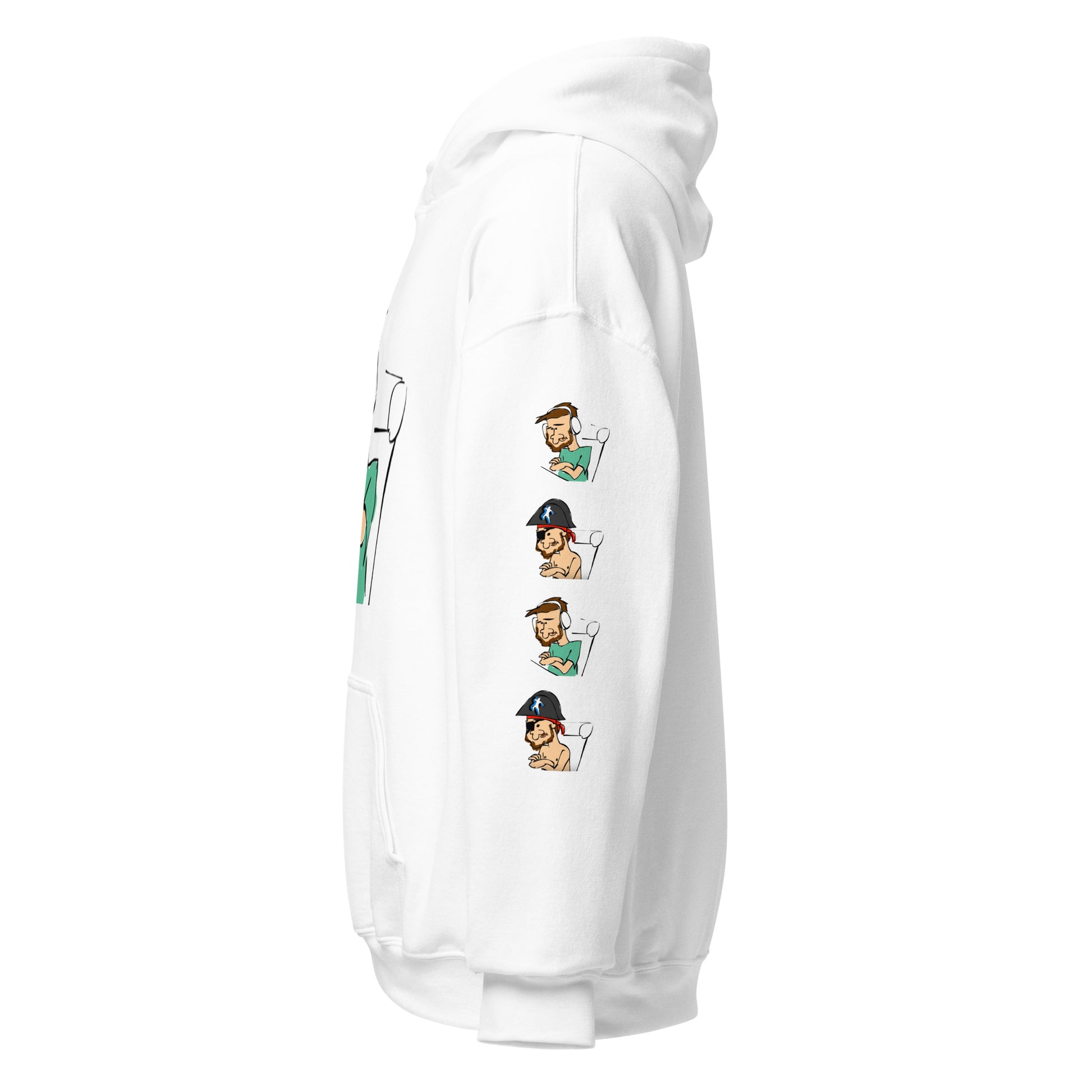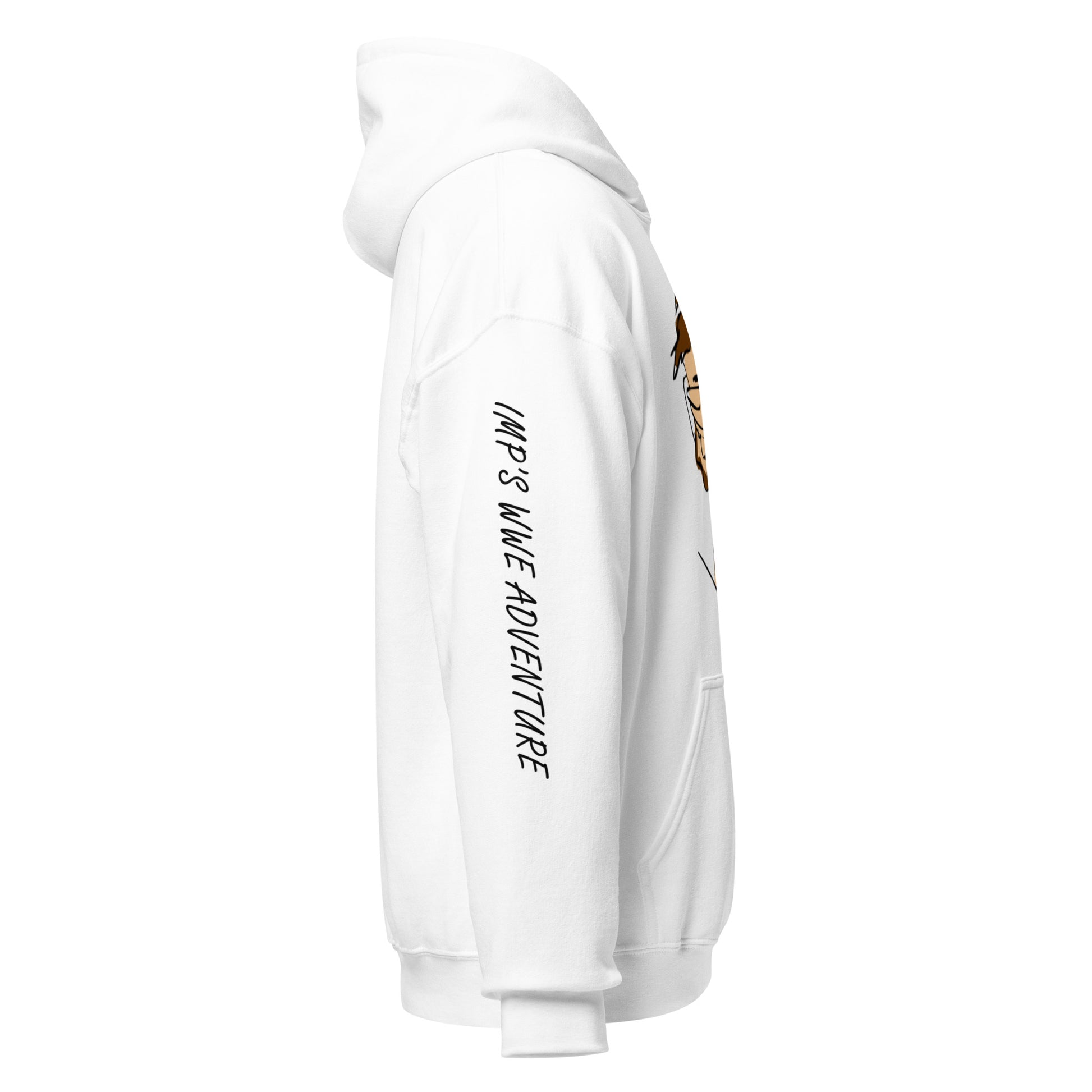 Classic heavy blend white pullover hoodie with Imp's WWE Adventure artwork on the front and left & right sleeves