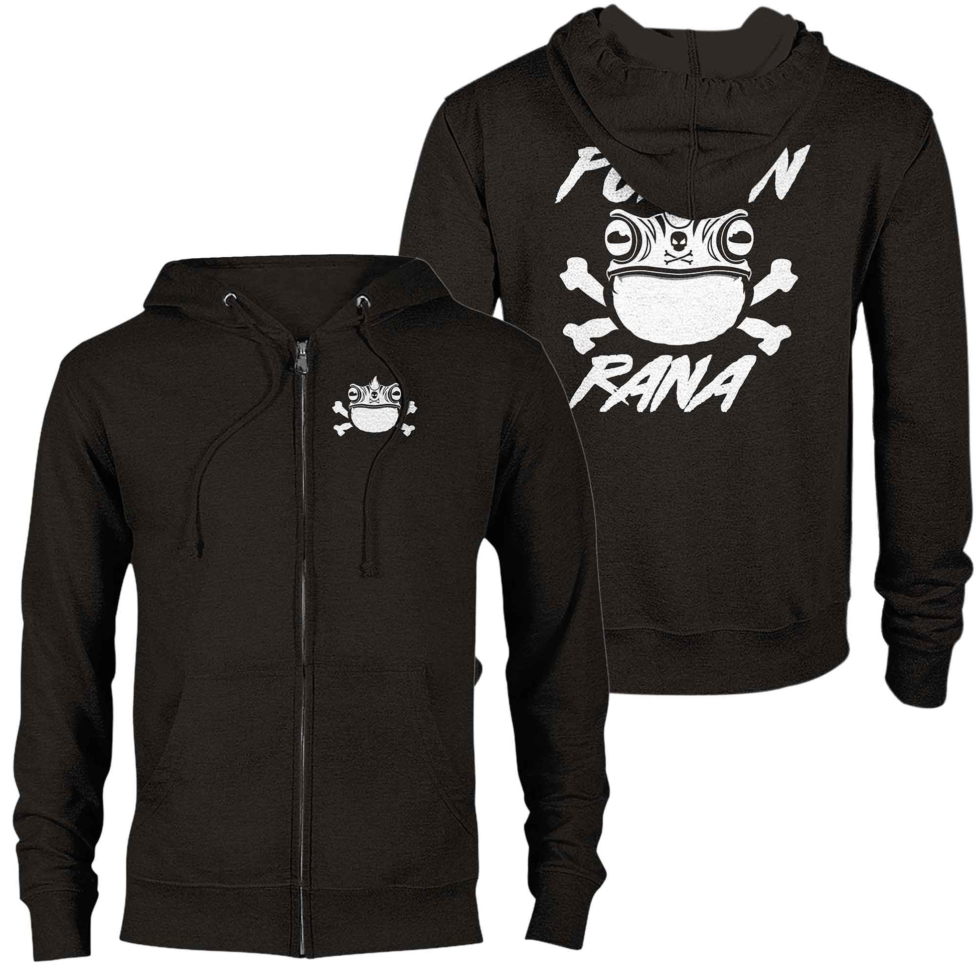 Classic heavy blend zip hoodie with Poisonrana Frog on the left chest and alternative Poisonrana logo on the back