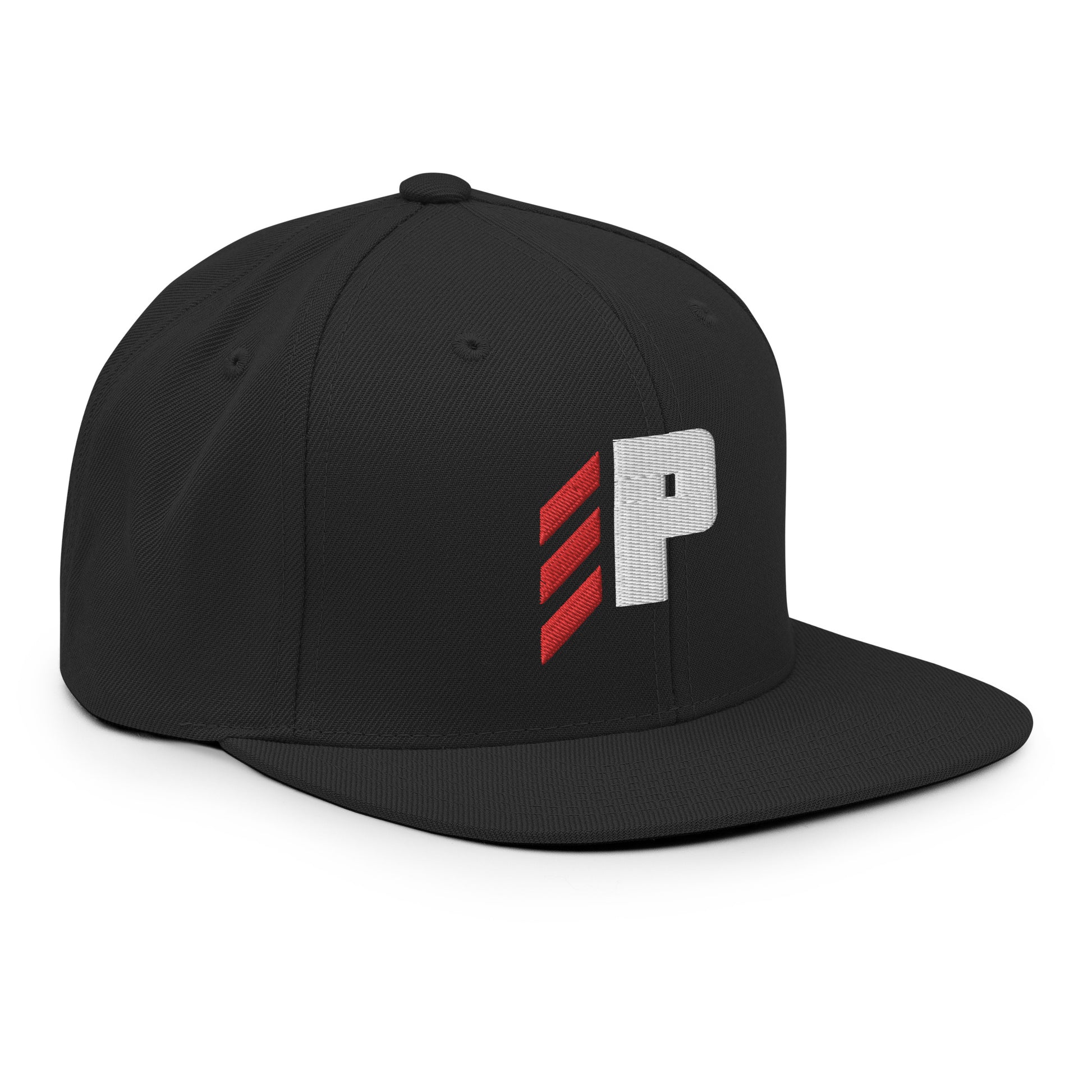 6-Panel high profile flat brim snapback hat with embroidered POST Wrestling ///P logo. One size fits all.